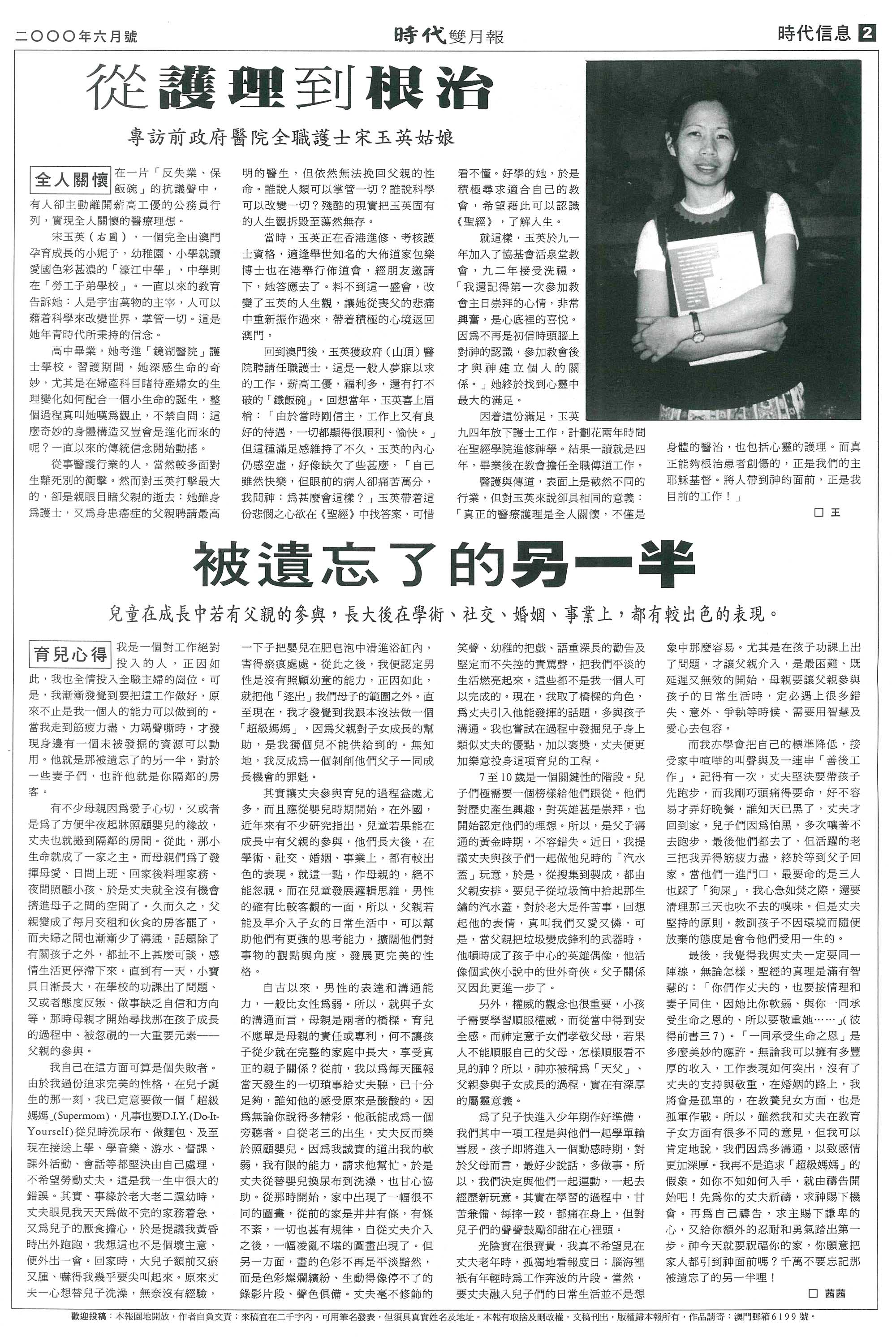 因這份滿足,玉英九四年放下護士工作,計劃花兩年時間在聖經學院進修神學。結果一讀就是四年,畢業後在教會擔任全職傳道工作。