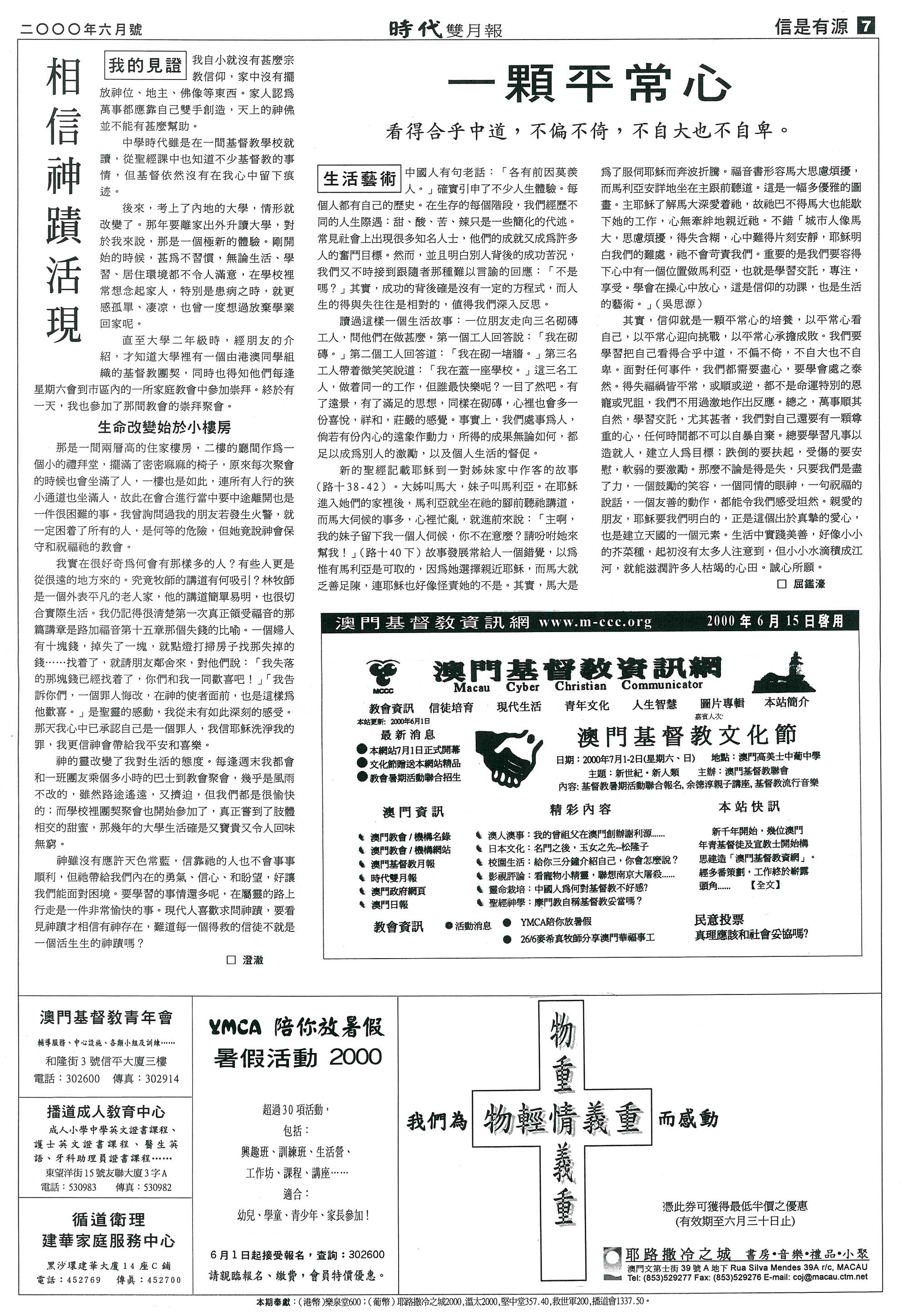 「直至現在亦一樣,每一個重要的決定都是藉禱告,然後等待神逐步的帶領。」國揚之所以這樣說,是因為在來澳之前,其實與太太紫微一樣,對澳門的認識很是有限,但就是憑藉這樣對上帝的信靠,他們一家在澳門已經生活快六個年頭了。