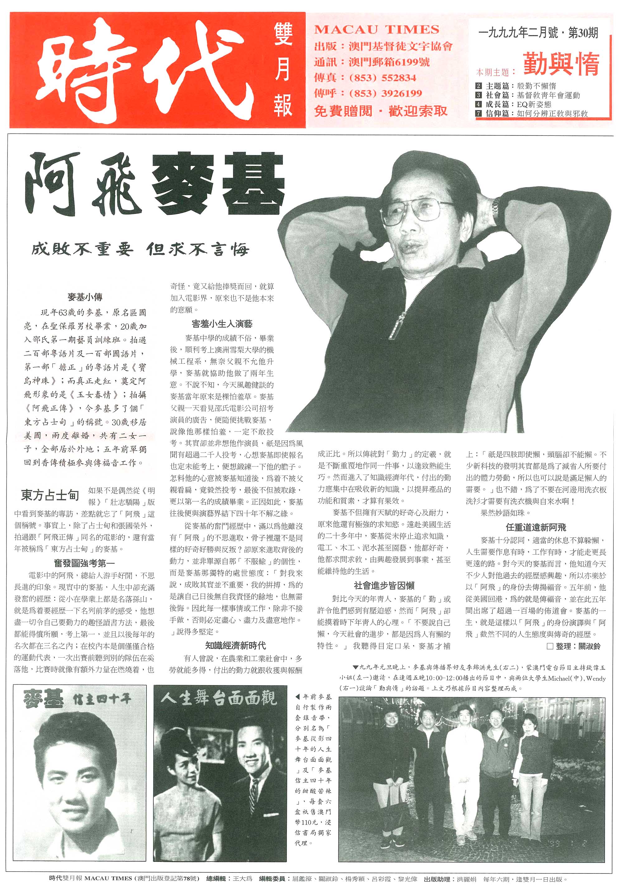麥基十分認同﹐適當的休息不算躲懶﹐人生需要作息有時﹐工作有時﹐才能走更長更遠的路。對今天的麥基而言﹐他知道今天不少人對他過去的經歷感興趣﹐所以亦樂於以「阿飛」的身份去傳揚福音。五年前﹐他從美國回港﹐為的就是傳福音﹐並在此五年間出席了超過一百場的佈道會﹐麥基的一生﹐就是這樣以「阿飛」的身份演譯與「阿飛」截然不同的人生態度與傳奇的經歷。