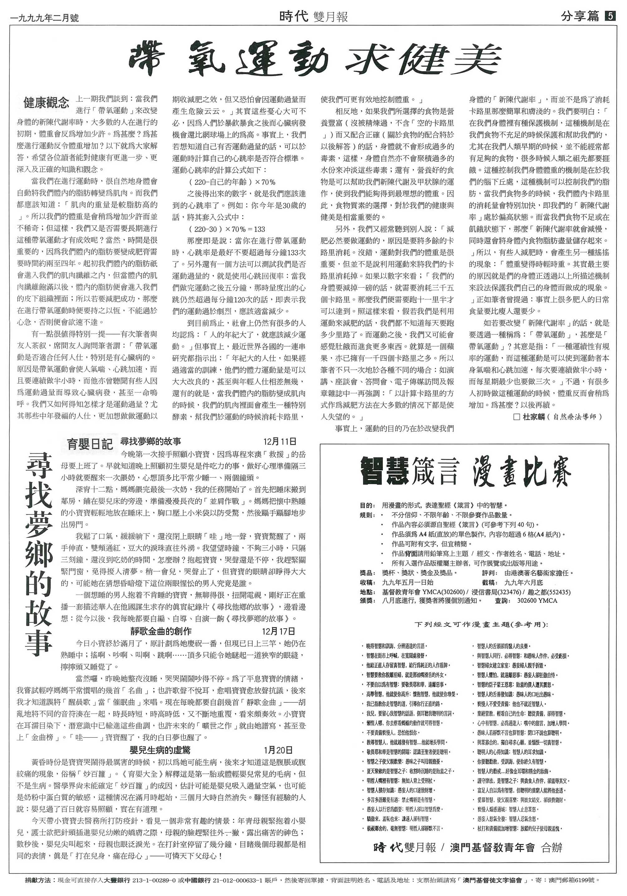 有一點很值得特別一提╴╴有次筆者與友人茶敘﹐席間友人詢問筆者謂﹕瘛帶氧運動是否適合任何人仕﹐特別是有心臟病的。原因是帶氧運動會人氣喘﹑心跳加速﹐而且要連續做半小時﹐而他亦曾聽聞有些人因為運動過量而導致心臟病發﹐甚至一命嗚呼。我們又如何得知怎樣才是運動過量﹖尤其那些中年發福的人仕﹐更加想做做運動以期收減肥之效﹐但又恐怕會因運動過量而產生危險云云。瘼其實這些憂心大可不必﹐因為人們於暴飲暴食之後而心臟病發機會還比網球場上的為高。事實上﹐我們若想知道自己有否運動過量的話﹐可以於運動時計算自己的心跳率是否符合標準。運動心跳率的計算公式如下﹕