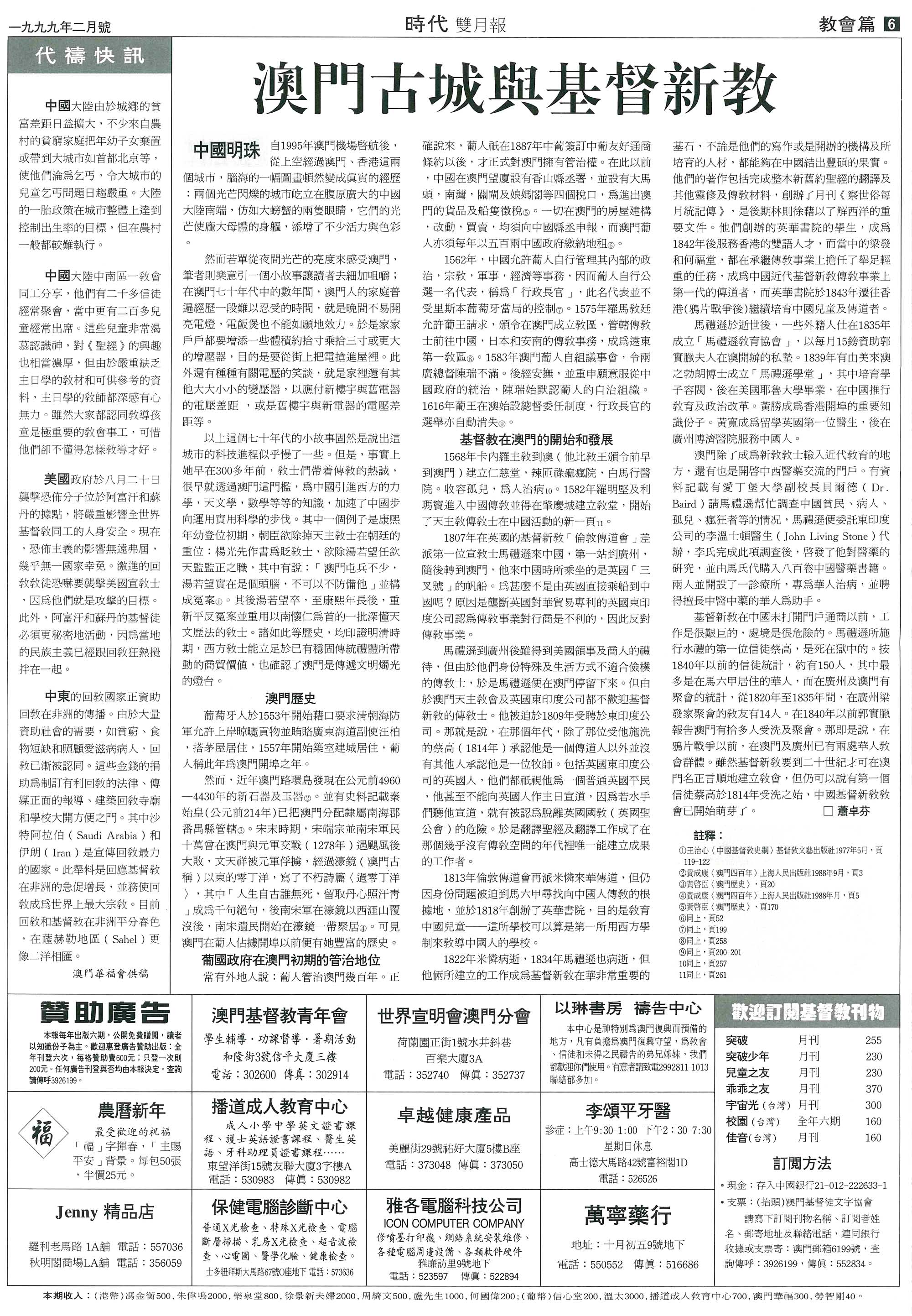 以上這個七十年代的小故事固然是說出這城市的科技進程似乎慢了一些。但是,事實上她早在300多年前,教士們帶著傳教的熱誠,很早就透過澳門這門檻,為中國引進西方的力學,天文學,數學等等的知識,加速了中國步向運用實用科學的步伐。其中一個例子是康熙年幼登位初期,朝臣欲除掉天主教士在朝廷的重位:楊光先作書為貶教士,欲除湯若望任欽天監監正之職,其中有說:「澳門屯兵不少,湯若望實在是個頭腦,不可以不防備他」並構成冤案(1)。其後湯若望卒,至康熙年長後,重新平反冤案並重用以南懷仁為首的一批深懂天文歷法的教士。諸如此等歷史,均印證明清時期,西方教士能立足於已有穩固傳統禮教之中國,必有他們可供中國人借鑒的本領。並且在科技知識的背後,明清朝廷還看到外來群體所帶動的商貿價值,也確認了澳門是傳遞文明燭光的燈台。