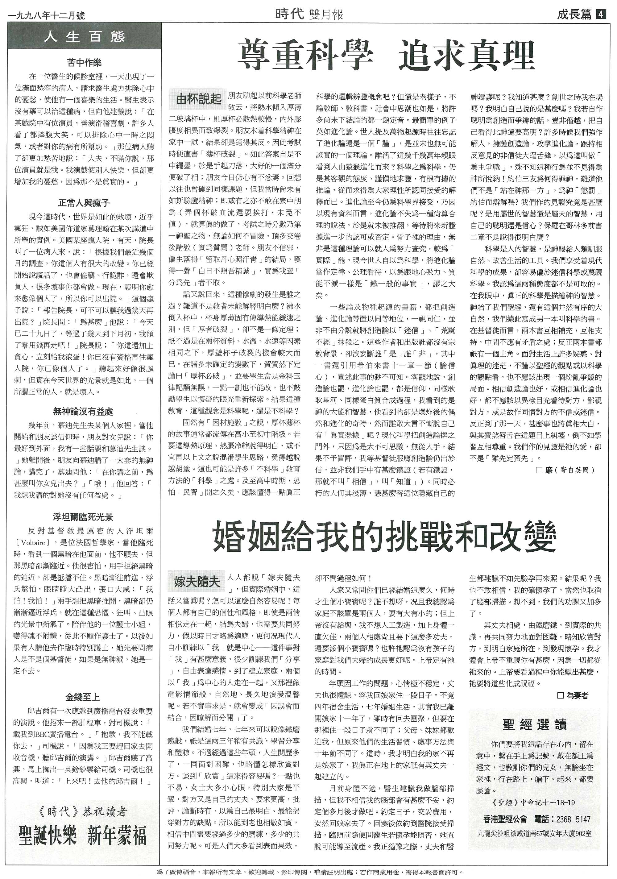 不同階層的人所面對的困難。在這些關係上我都是盡力地天天更新﹐使我的生活活得更為光